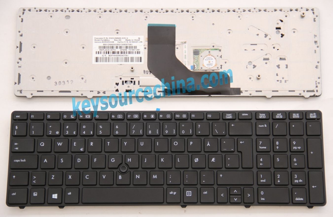 701987-091, Nordic Norwegian Keyboard for HP Probook 6560b 6565b 6570b Norsk Tastatur, Dansk Tastatur