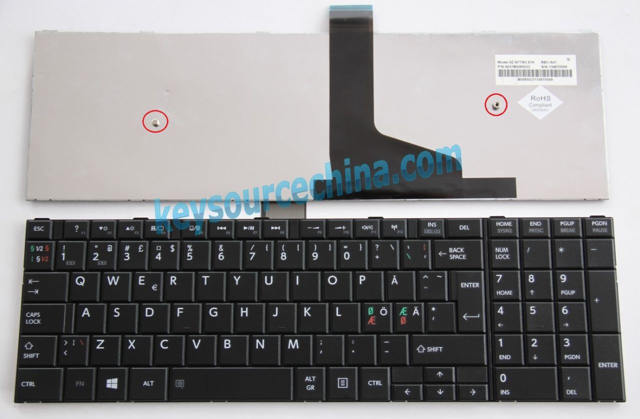 Toshiba Satellite C50-A Nordic Keyboard/ Scandinavian Keyboard/ Dansk Tastatur/ Norsk Tastatur/ Suomi Näppäimistö/ Svenska Tangentbord